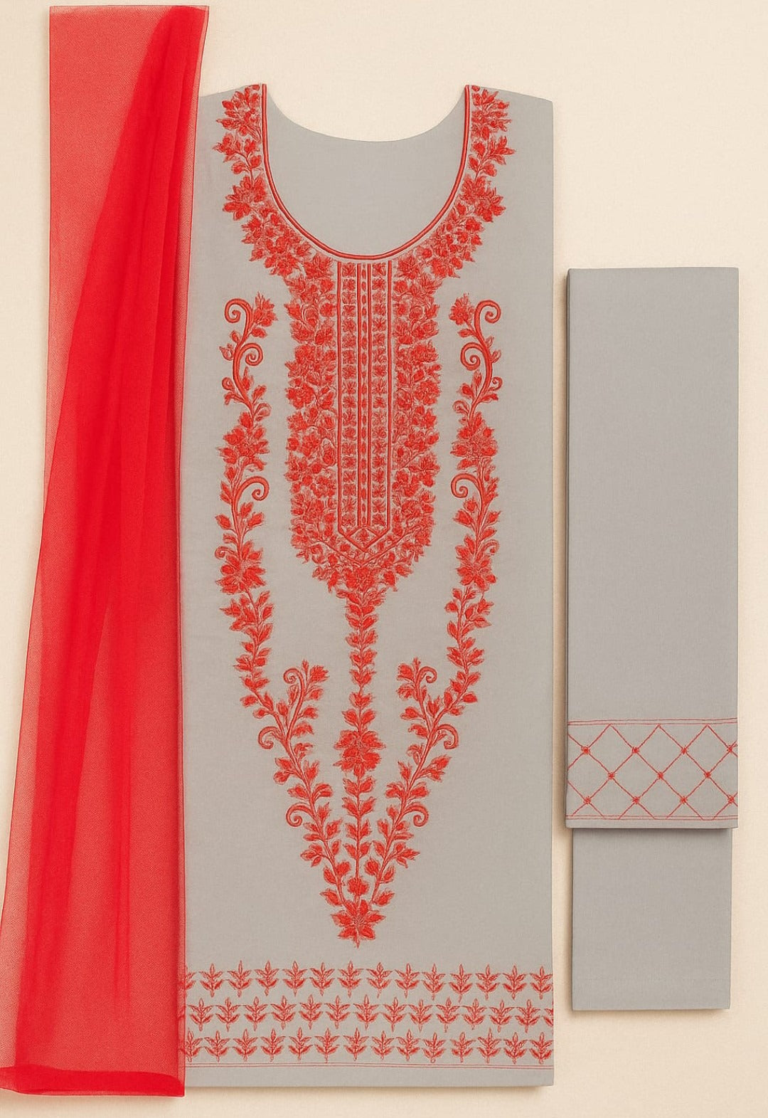 Product details of "3 Piece Embroidered Unstitched Cotton Suit for Women – Pakistani Summer Collection | Fancy & Casual Wear | Party & Daily Use | #CottonSuit #UnstitchedSuit #PakistaniFashion | Unstitched Cotton Suit | Embroidered Cotton Suit | 3 Piece