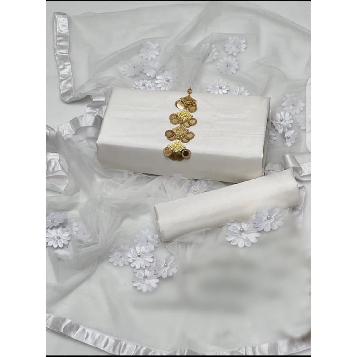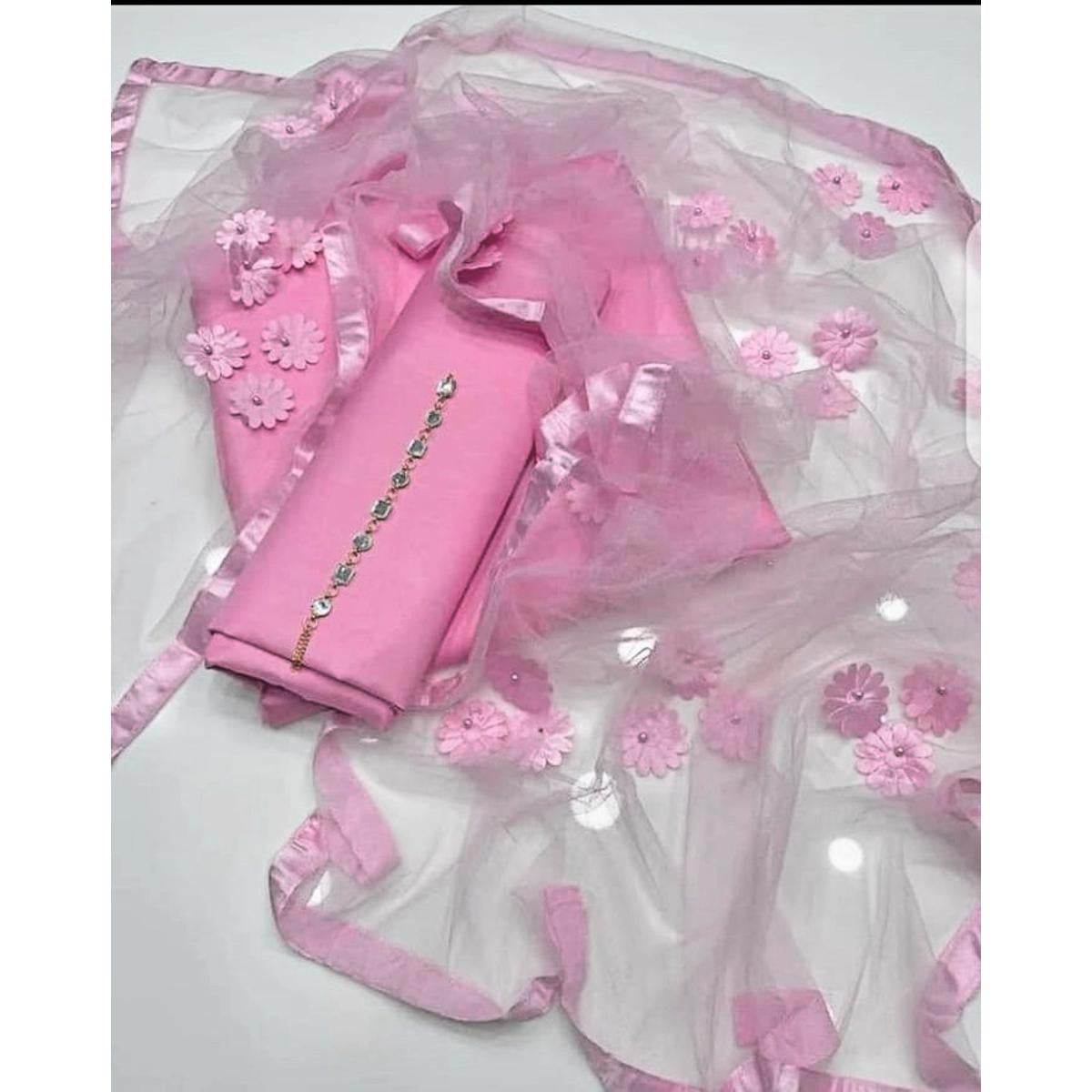 Rubika Fashion Most Hit Unstitched 3 Piece Collection Katan Silk Plain Shirt & Trouser With Net Dupatta For Women